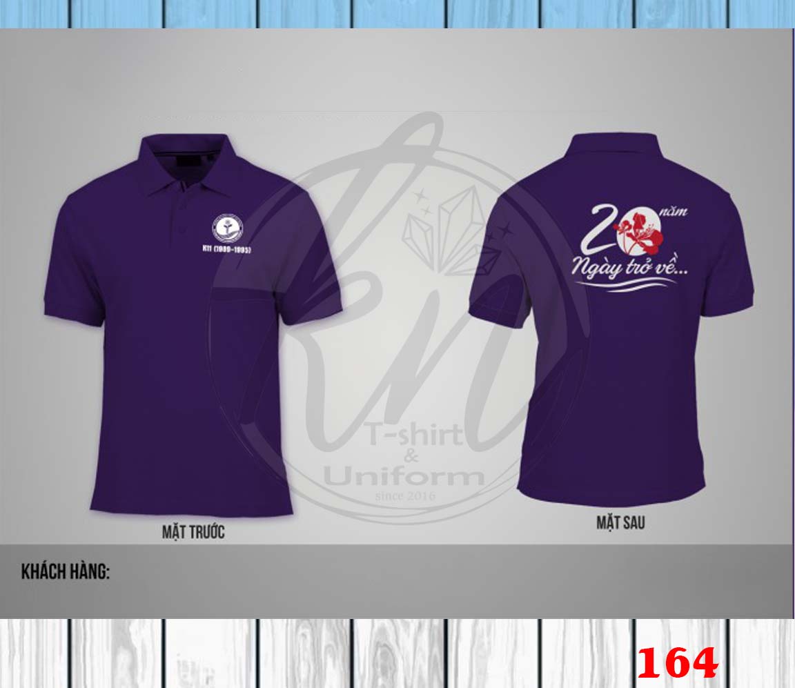 Thiết kế áo đồng phục họp lớp 20 năm hội ngộ nên là một sự kết hợp hài hòa giữa sự lịch lãm và sự tươi trẻ, phản ánh không chỉ sự trưởng thành mà còn là niềm vui của những kỷ niệm học trò. Dáng áo polo được chọn làm kiểu dáng chính, vừa mang lại sự thoải mái mà còn tôn lên vẻ ngoài thanh lịch của mỗi người.
